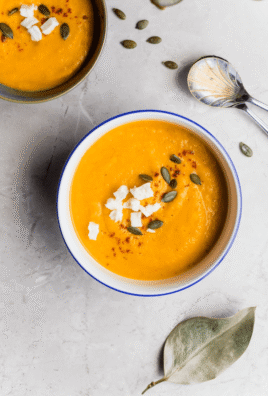 Bowl of warming Italian Broccoli Soup garnished with fresh herbs